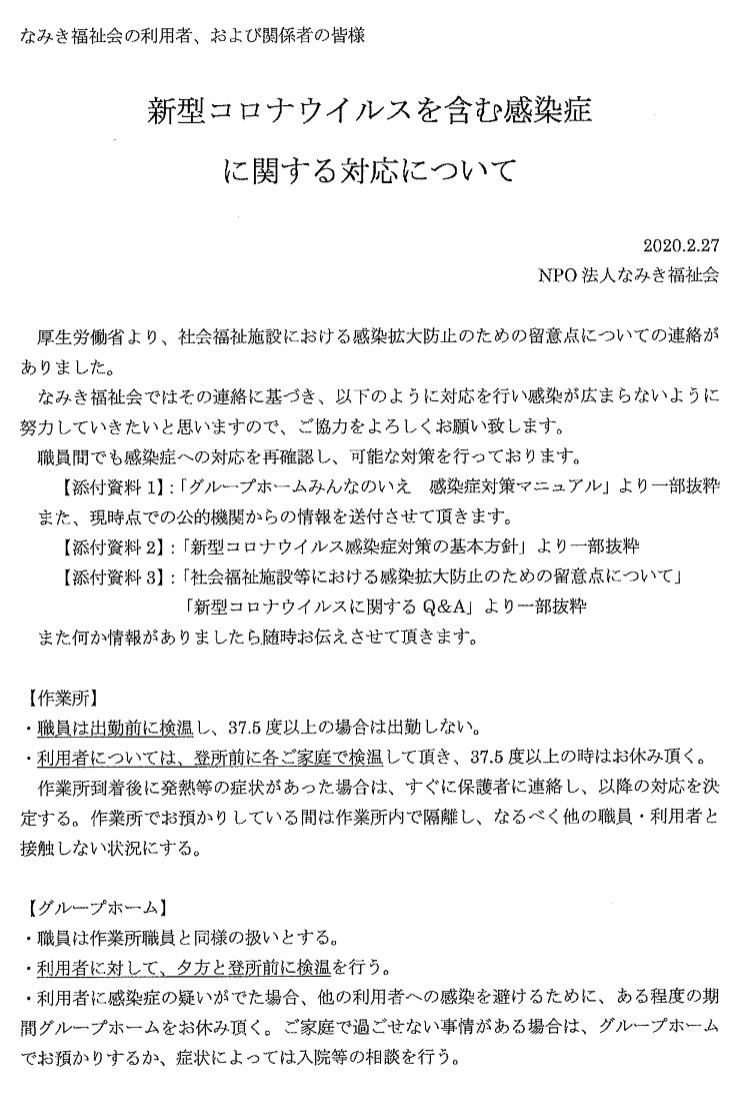 新型コロナウイルスを含む感染症に関する対応について